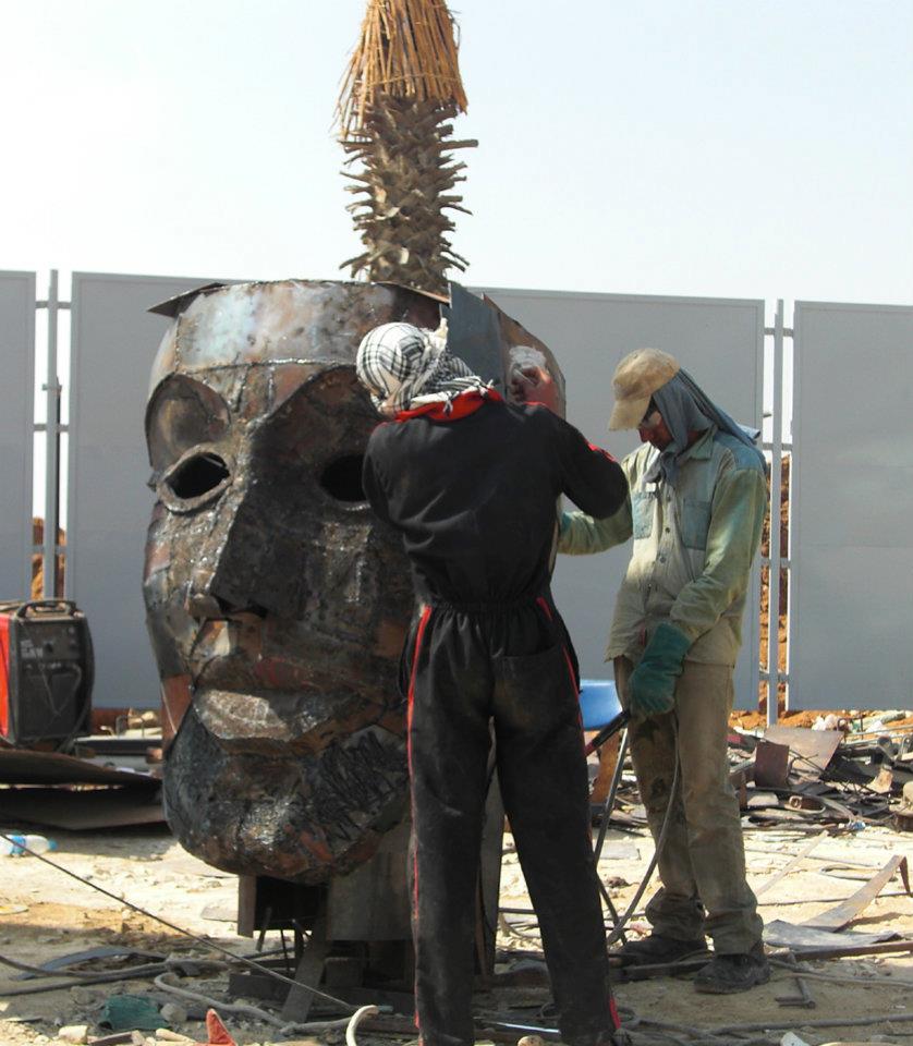Mahmoud Menaysy working in a monumental sculpture in Cairo 2011